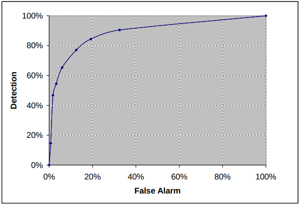 Figures 4 shows the Receiver Operating Characteristics (ROC) curve for several values of $C_{OOV} \left(-\infty,-5,1,2,3,4,5,+\infty\right)$. Figure 5 shows the WER for the IV test set as the false alarm rate increases on the IV data. As expected performance significantly degrades for high false alarm rates.