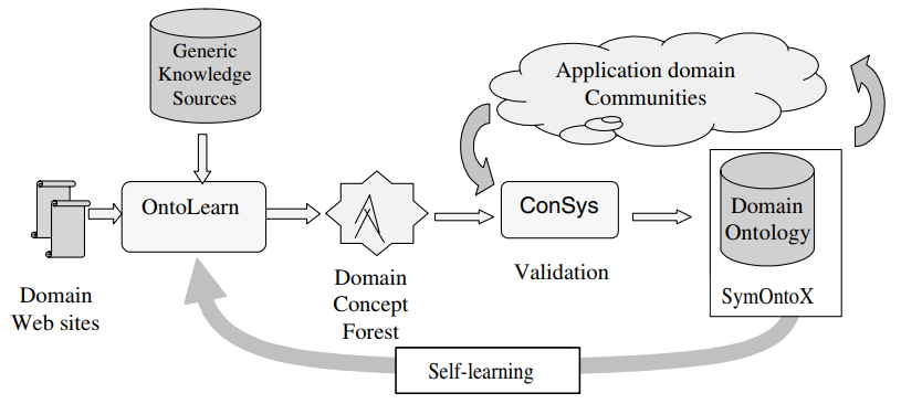 Figure 2: The ontology-engineering chain. In: Navigli & Velardi (2004).