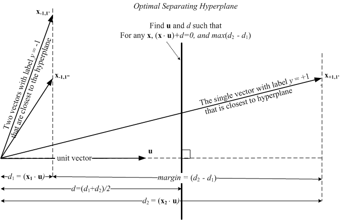 - Is an Optimal Canonical Separating Hyperplane when the distance from a closest vector (or Support Vector) to the hyperplane (i.e. ((w·x)+b)/ ||w||) is equal to 1.